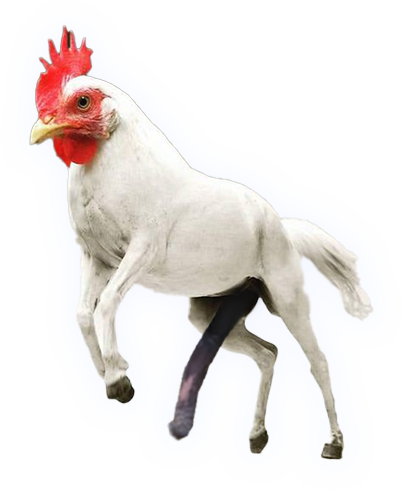 erect chicken ​horse in space